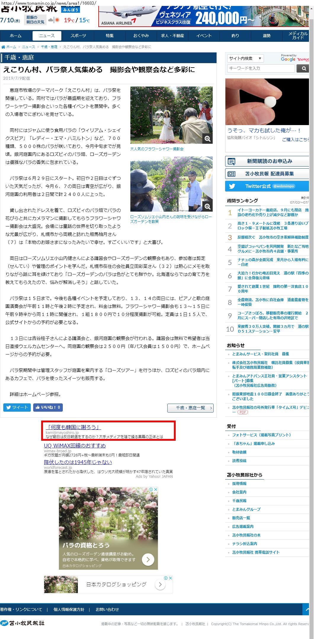 Webメディア 広告枠に赤枠付き