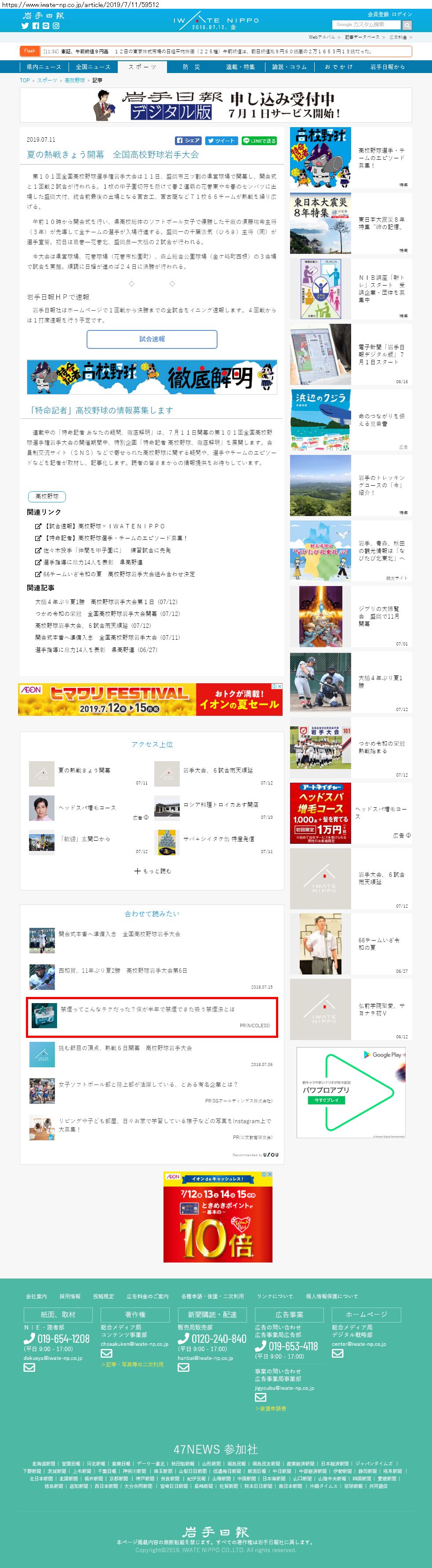 Webメディア 広告枠に赤枠付き