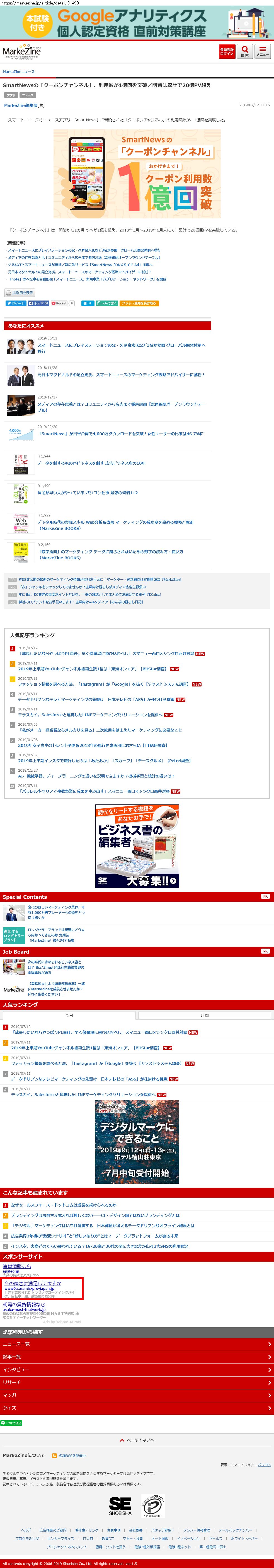 Webメディア 広告枠に赤枠付き