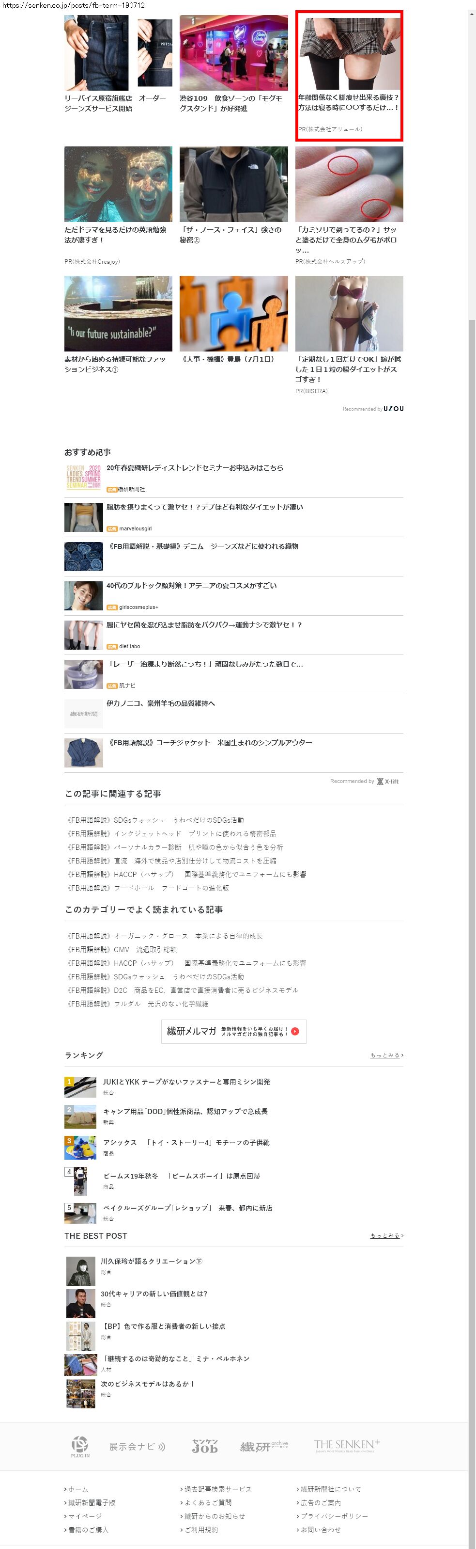 Webメディア 広告枠に赤枠付き