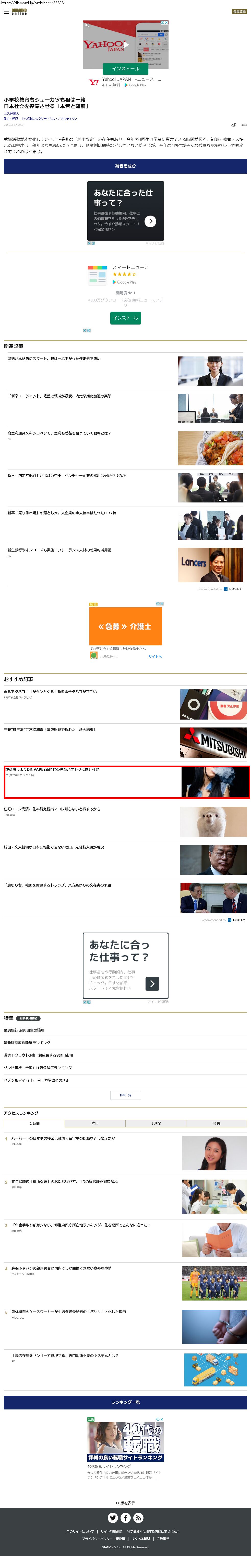 Webメディア 広告枠に赤枠付き