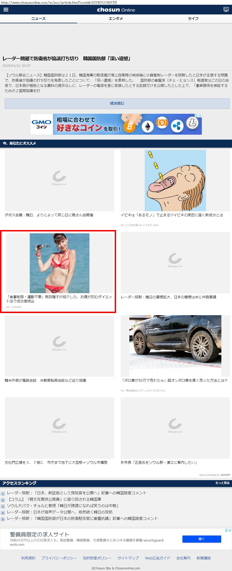Webメディア 広告枠に赤枠付き
