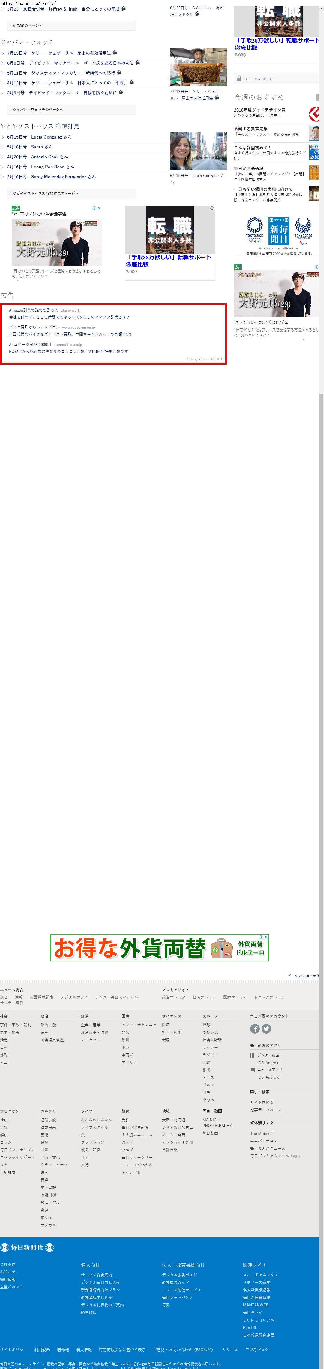 Webメディア 広告枠に赤枠付き