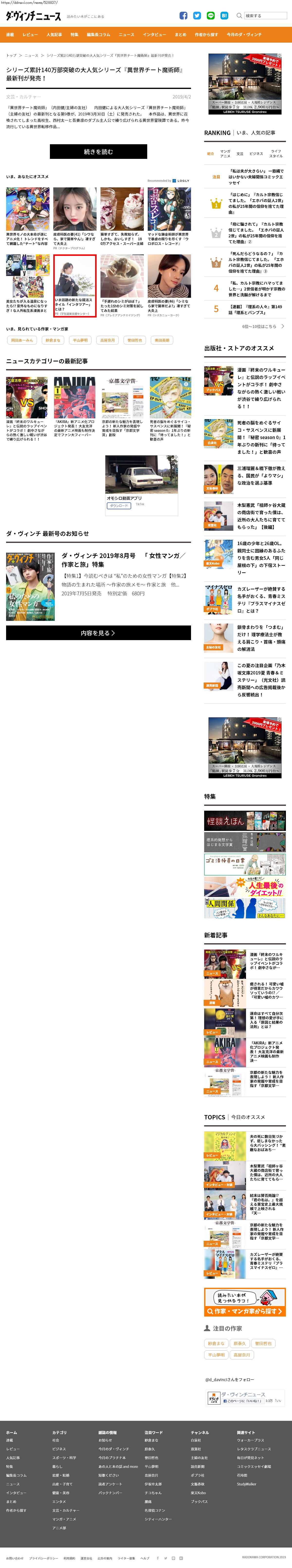 Webメディア 広告枠に赤枠付き