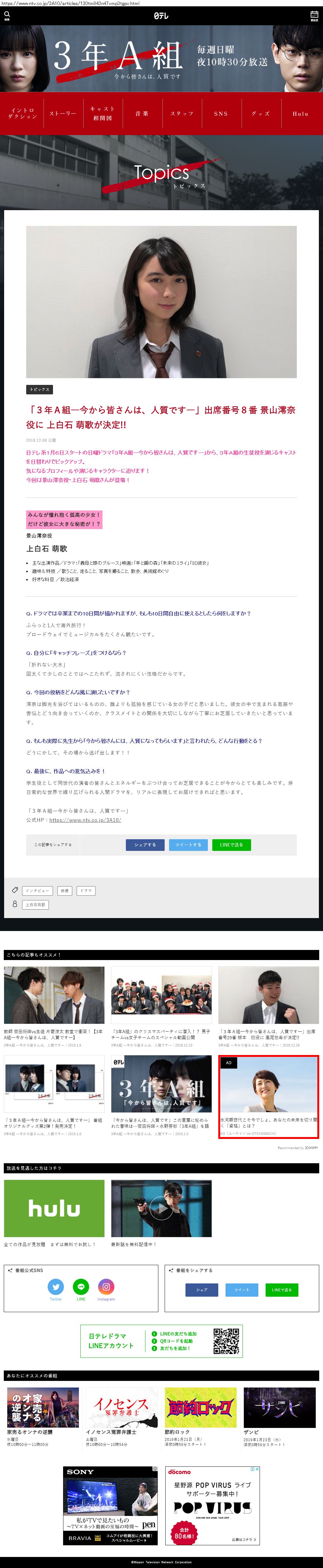 Webメディア 広告枠に赤枠付き
