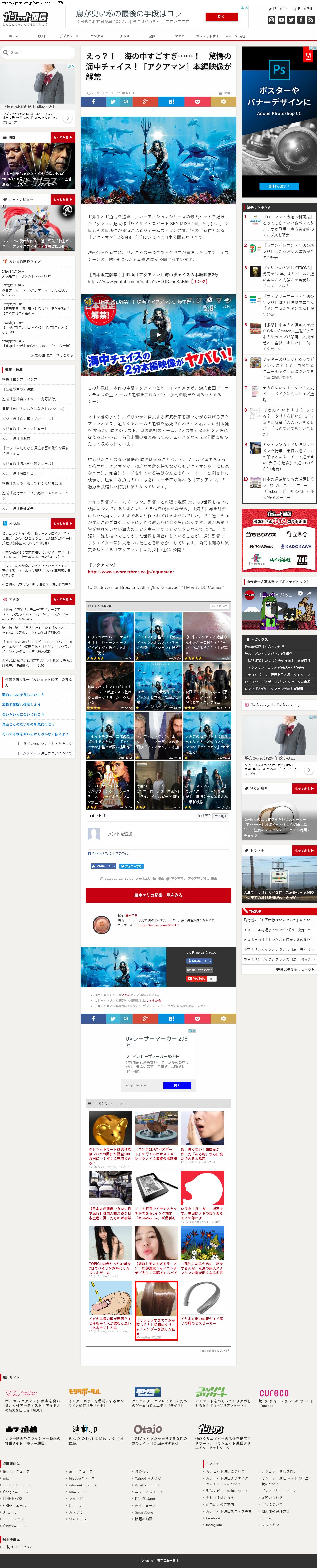 Webメディア 広告枠に赤枠付き