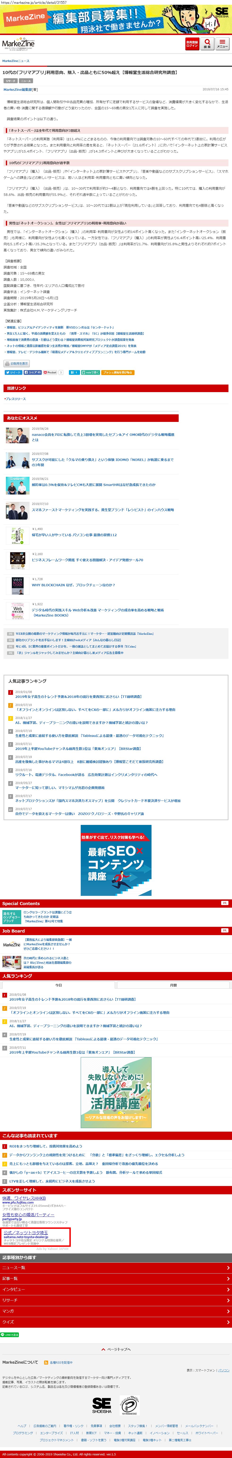 2019年1月~2020年12月のレコメンドウィジェット広告を記録しました。