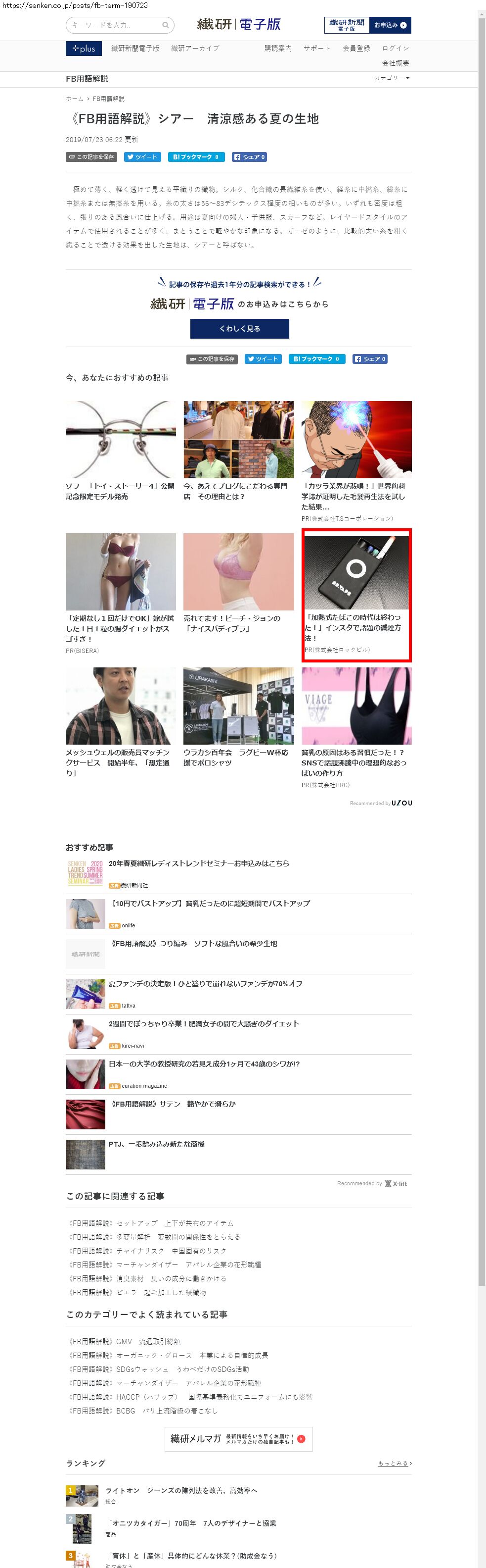 Webメディア 広告枠に赤枠付き