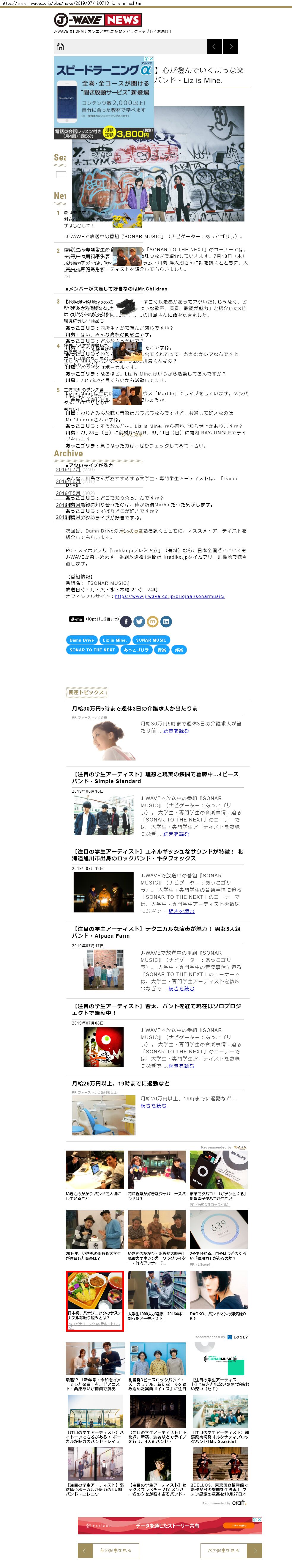 Webメディア 広告枠に赤枠付き