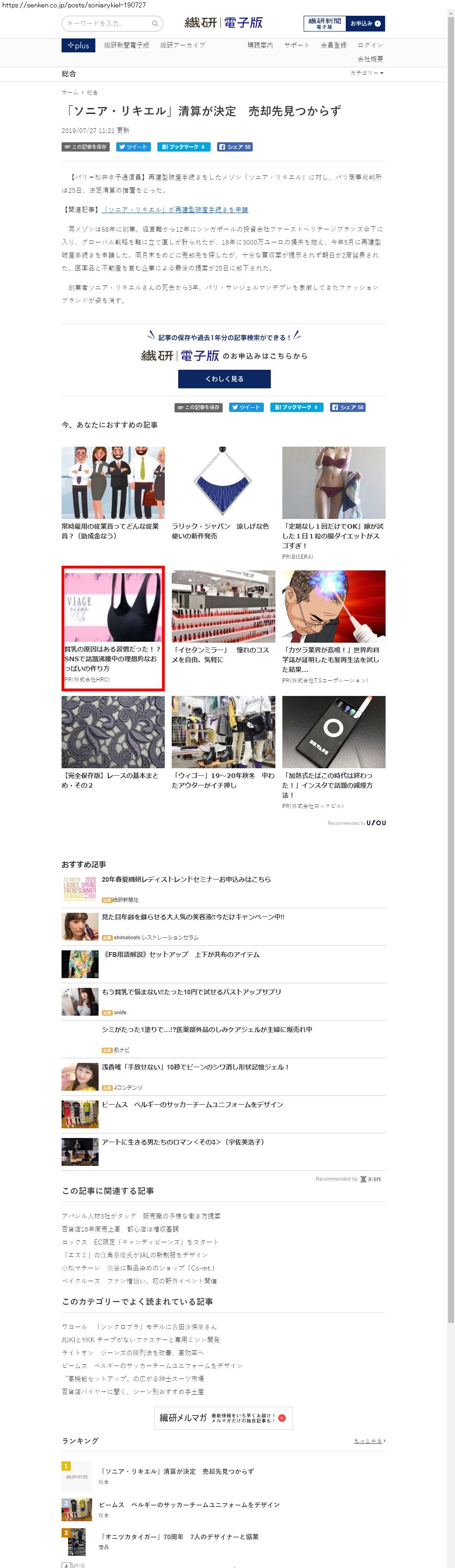 Webメディア 広告枠に赤枠付き