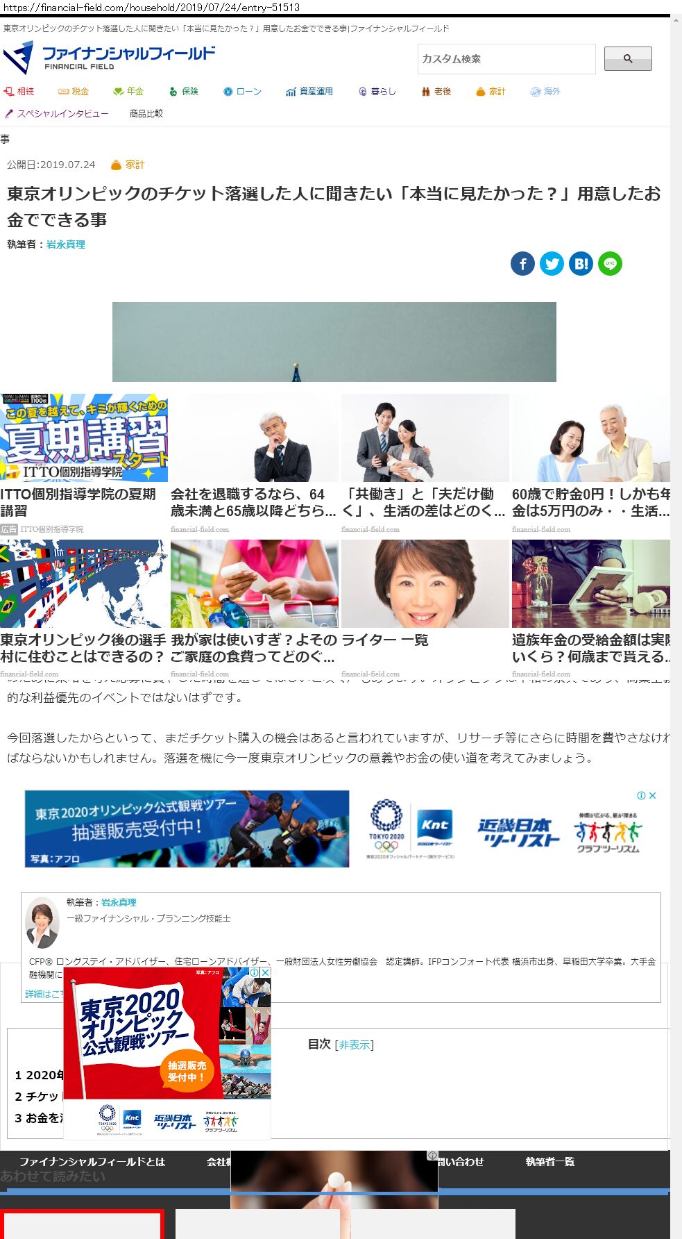 Webメディア 広告枠に赤枠付き
