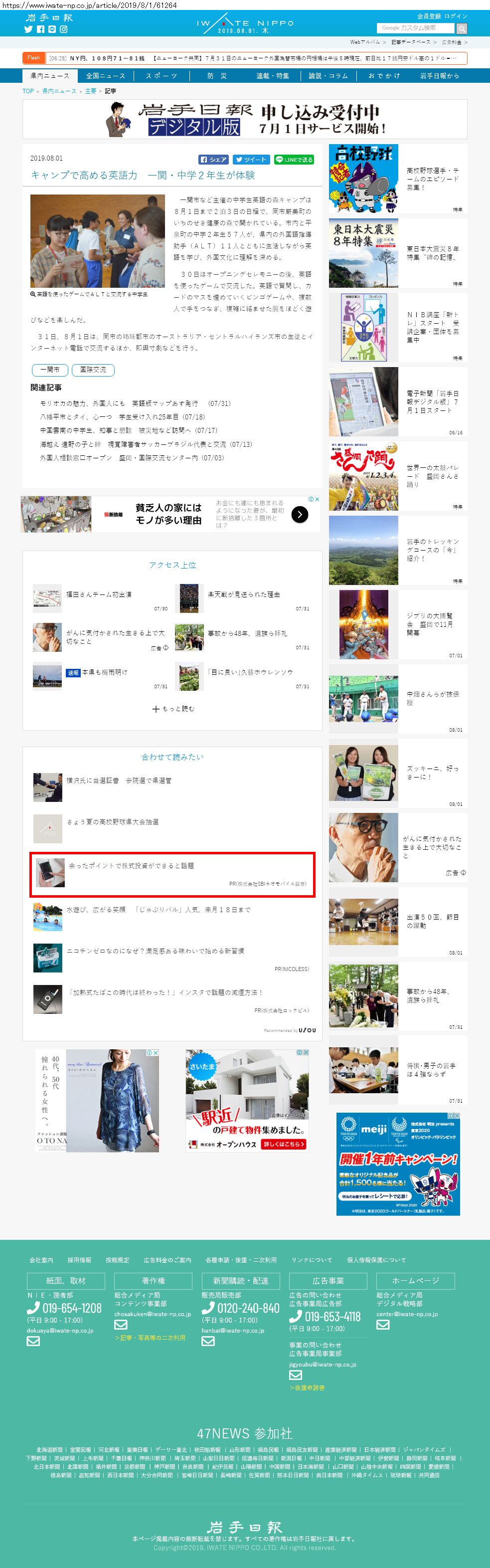 Webメディア 広告枠に赤枠付き