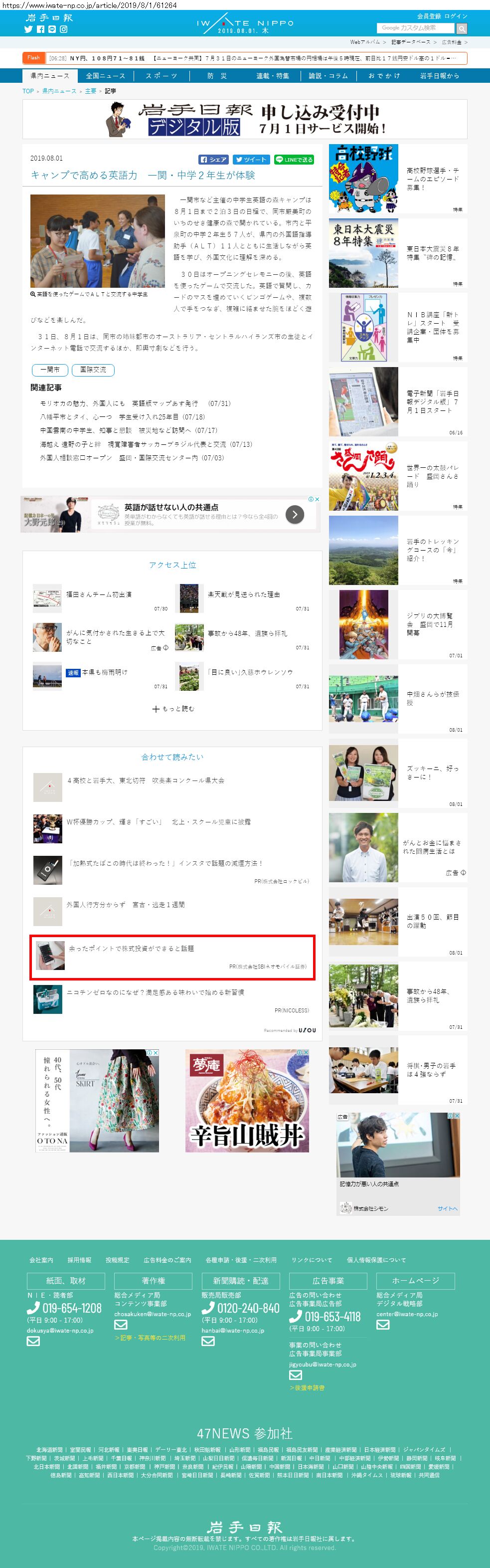 Webメディア 広告枠に赤枠付き