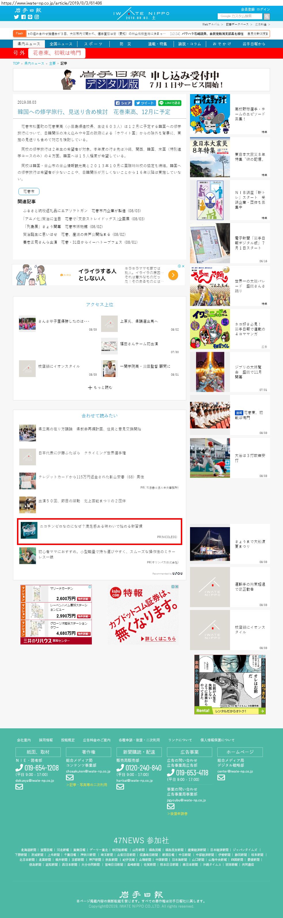 Webメディア 広告枠に赤枠付き