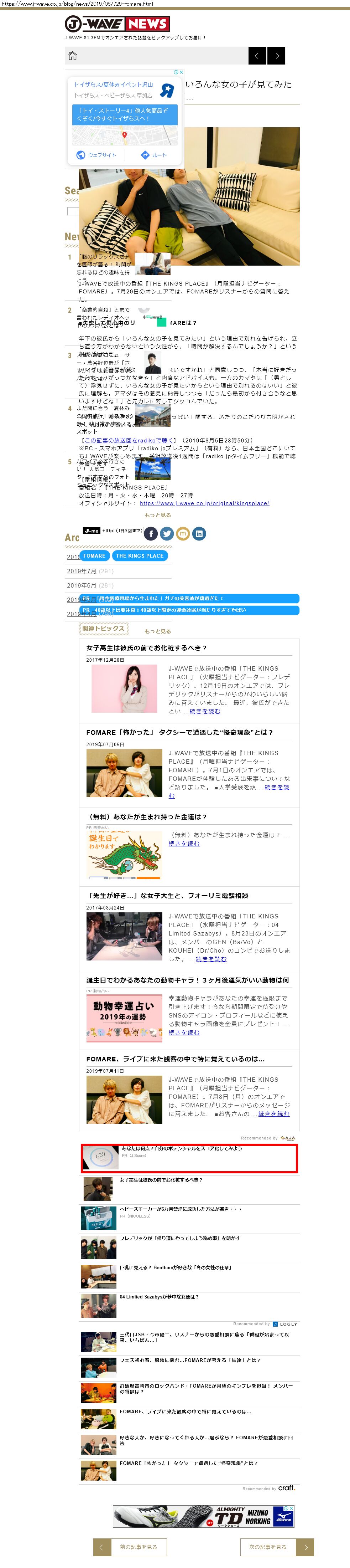 Webメディア 広告枠に赤枠付き