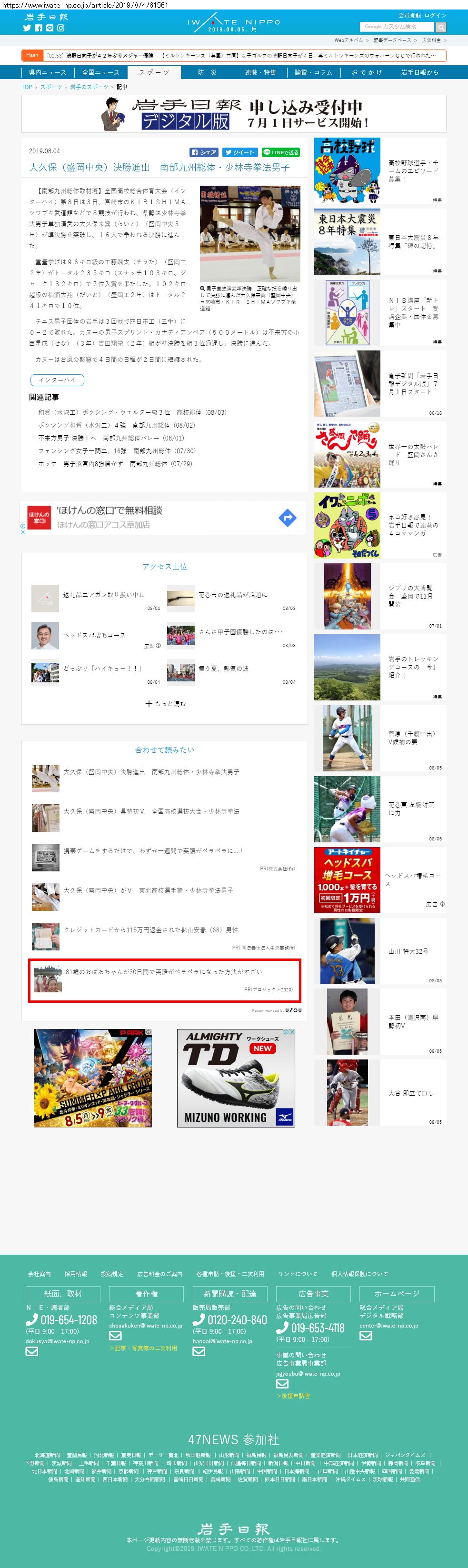 Webメディア 広告枠に赤枠付き