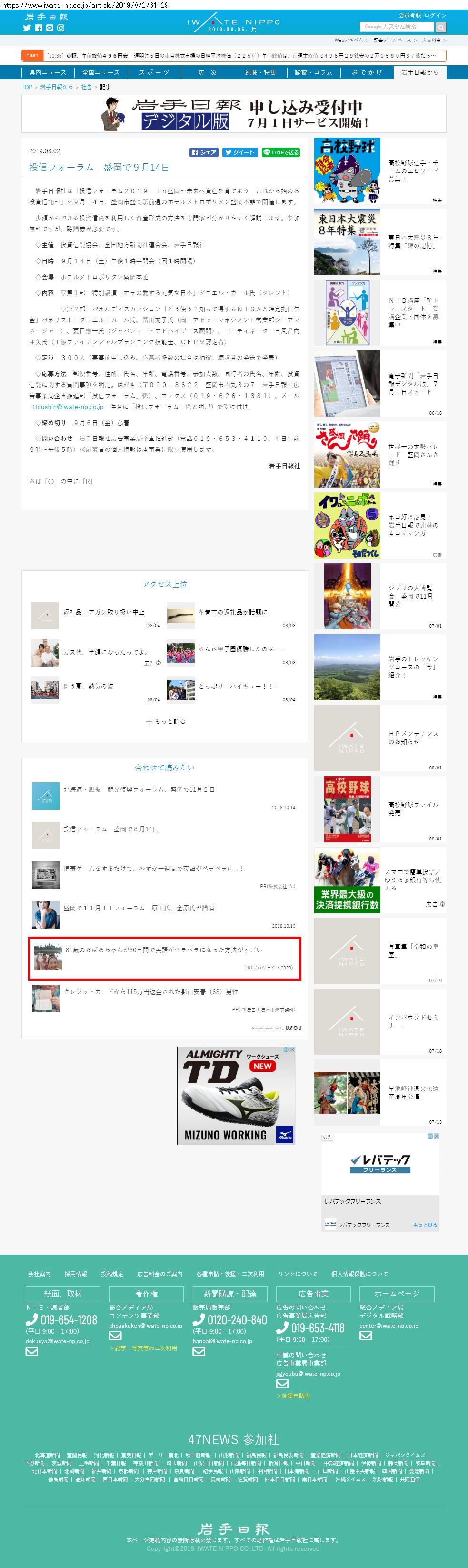 Webメディア 広告枠に赤枠付き