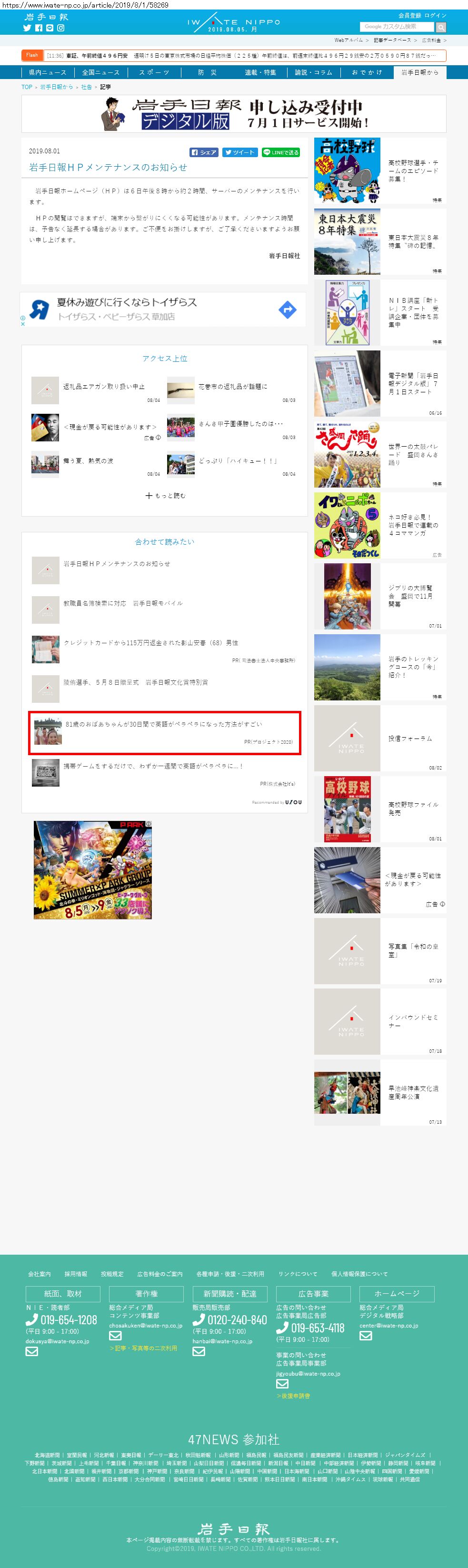 Webメディア 広告枠に赤枠付き