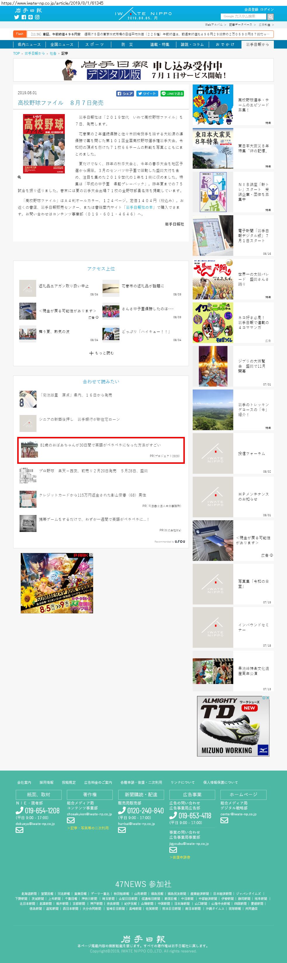 Webメディア 広告枠に赤枠付き