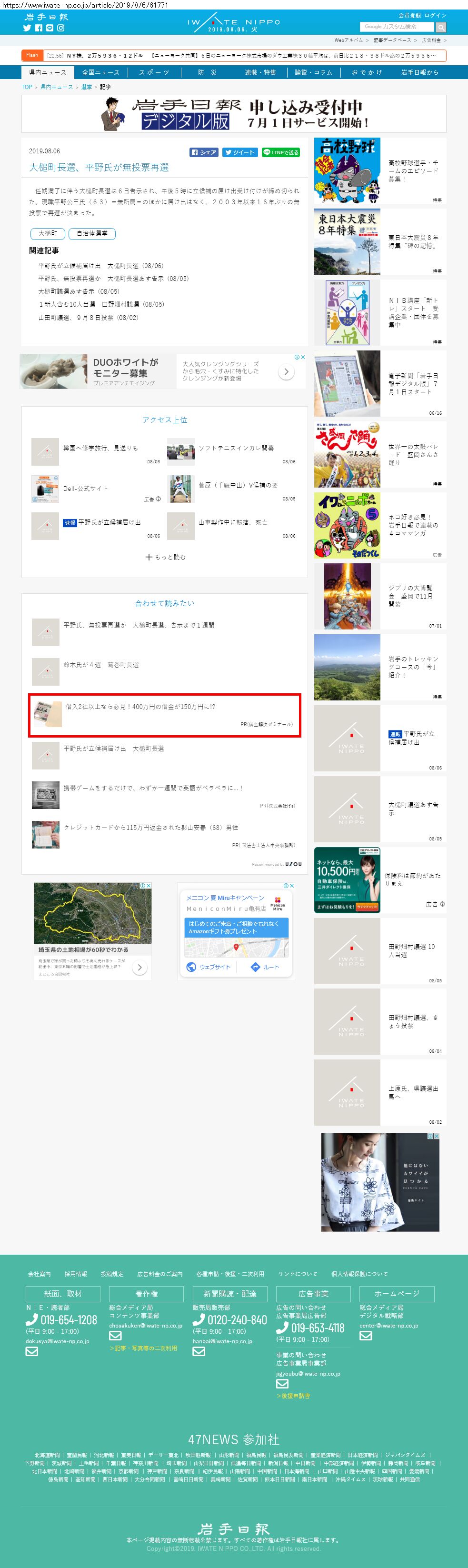 Webメディア 広告枠に赤枠付き
