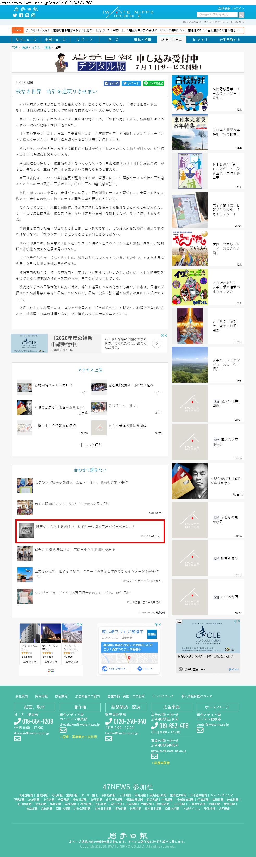 Webメディア 広告枠に赤枠付き