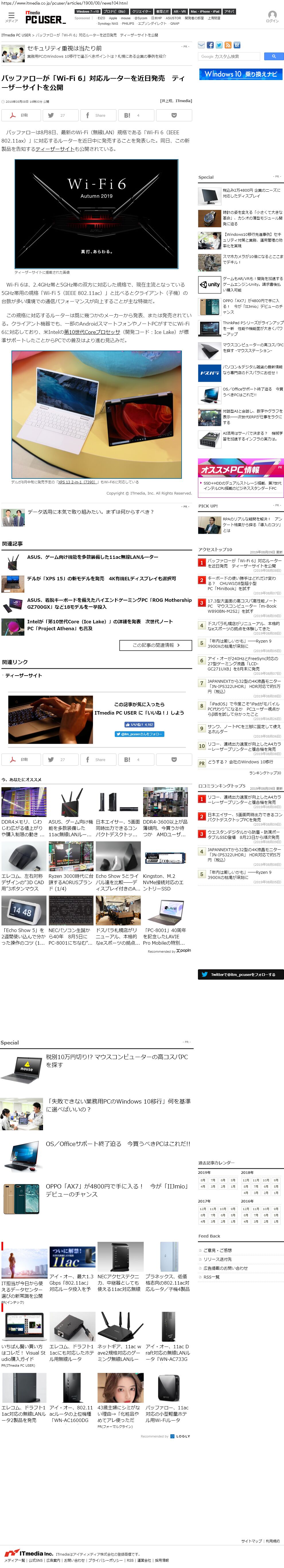 Webメディア 広告枠に赤枠付き