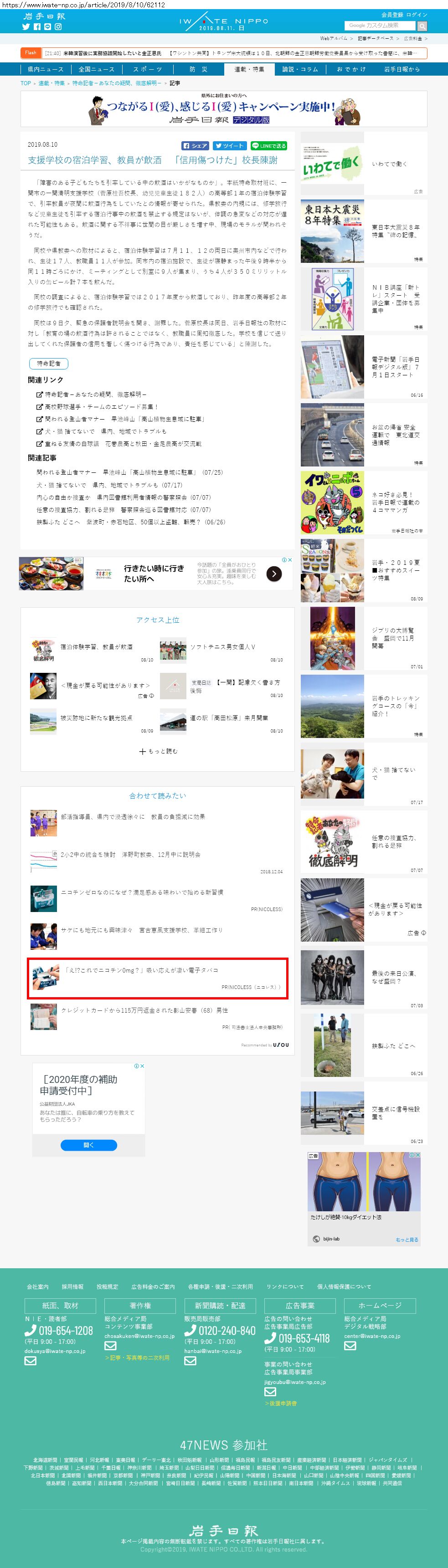 Webメディア 広告枠に赤枠付き