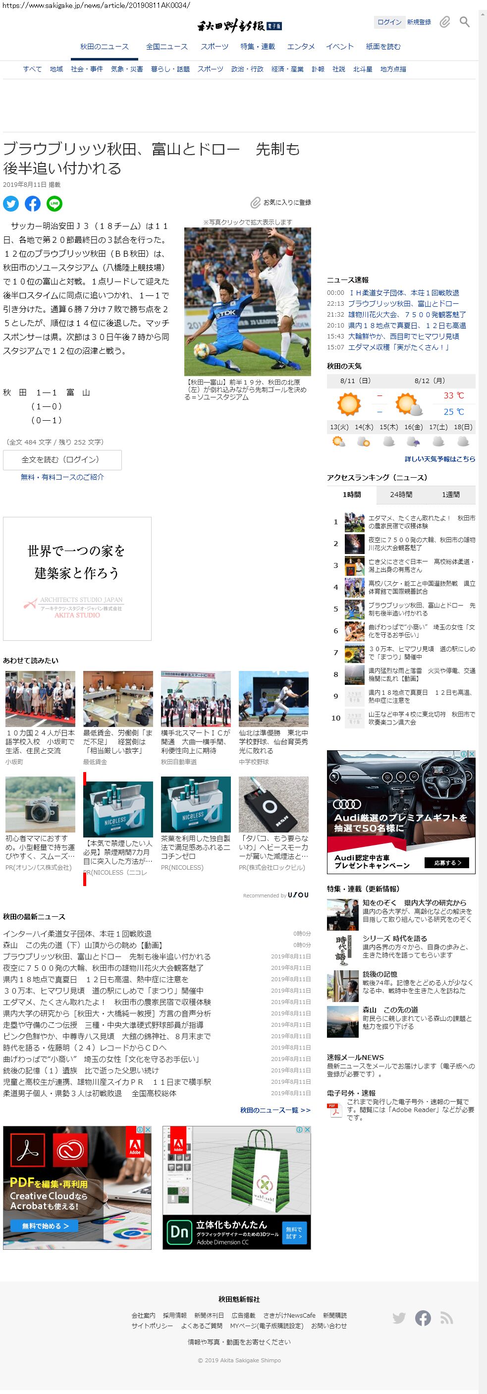 Webメディア 広告枠に赤枠付き