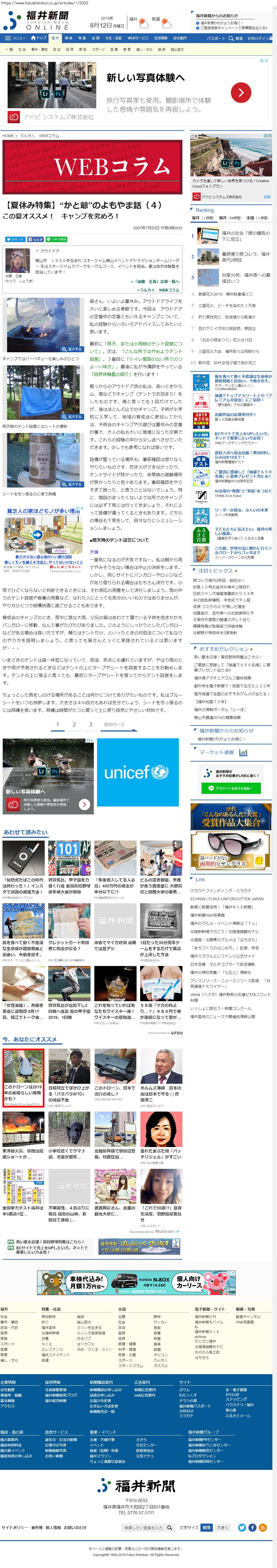 Webメディア 広告枠に赤枠付き