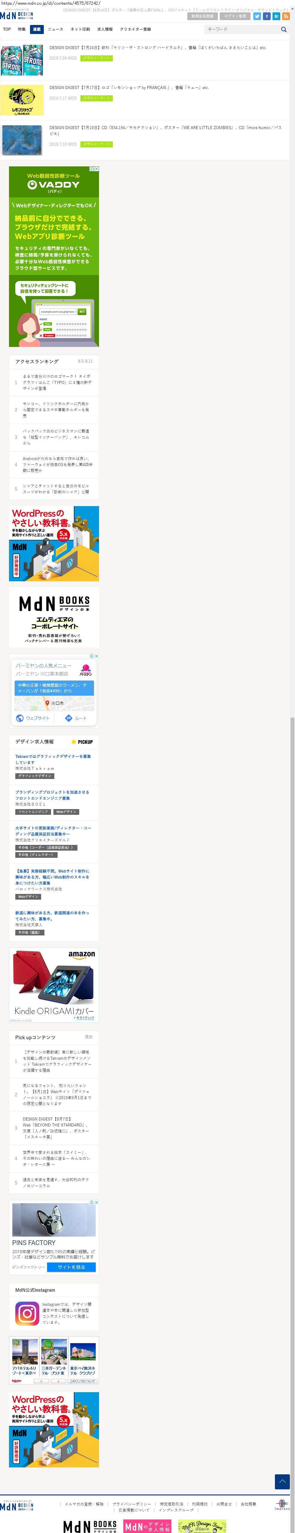 Webメディア 広告枠に赤枠付き