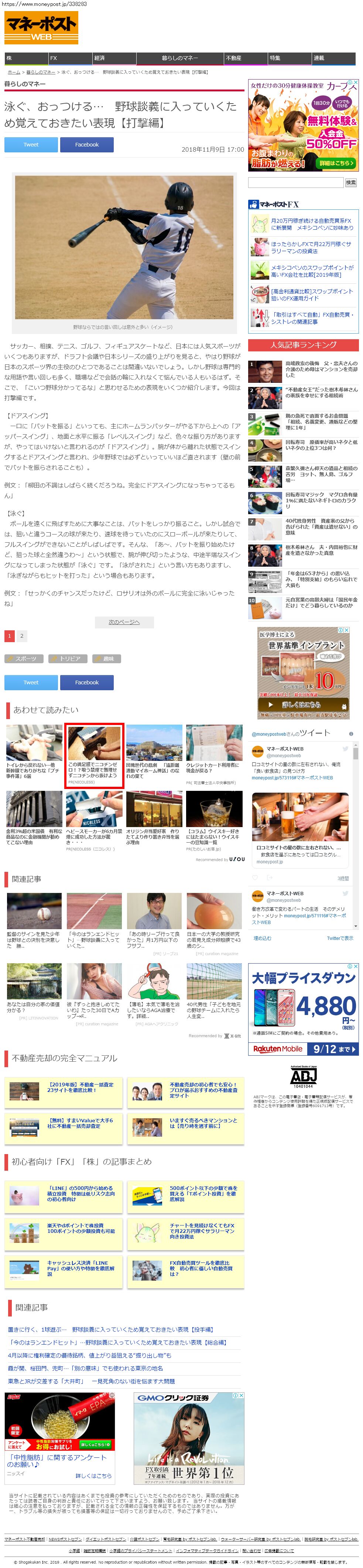 Webメディア 広告枠に赤枠付き