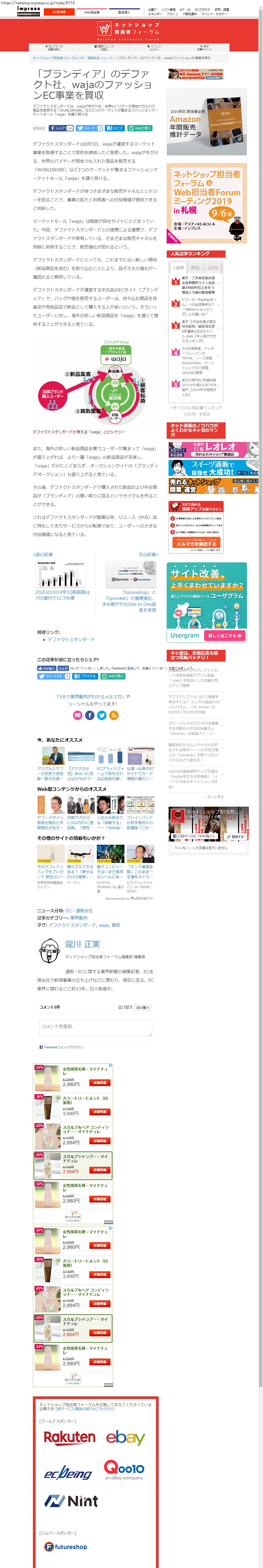 Webメディア 広告枠に赤枠付き