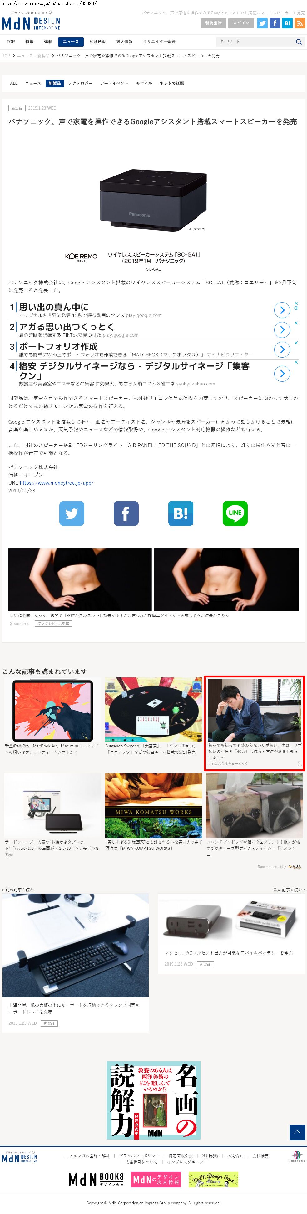 Webメディア 広告枠に赤枠付き