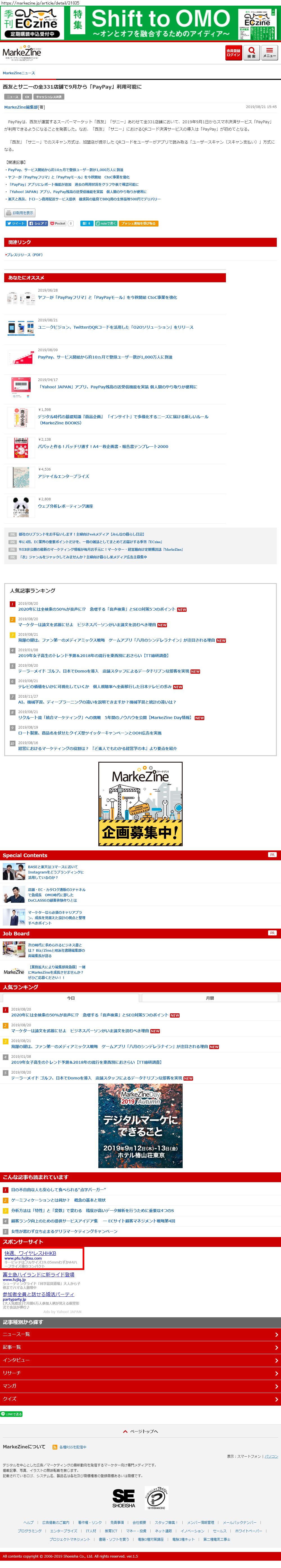 Webメディア 広告枠に赤枠付き