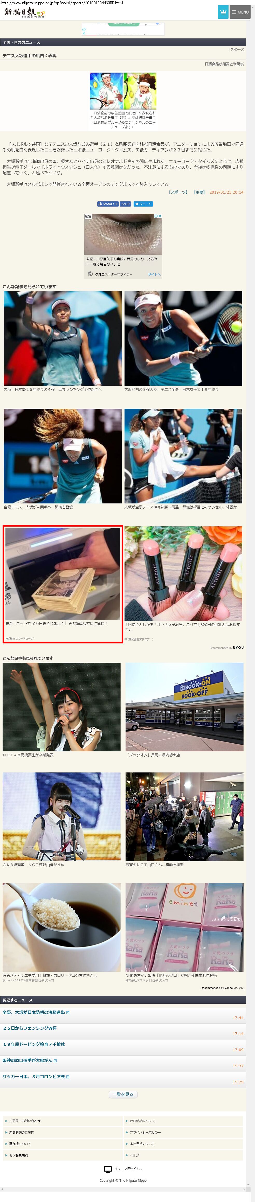 Webメディア 広告枠に赤枠付き