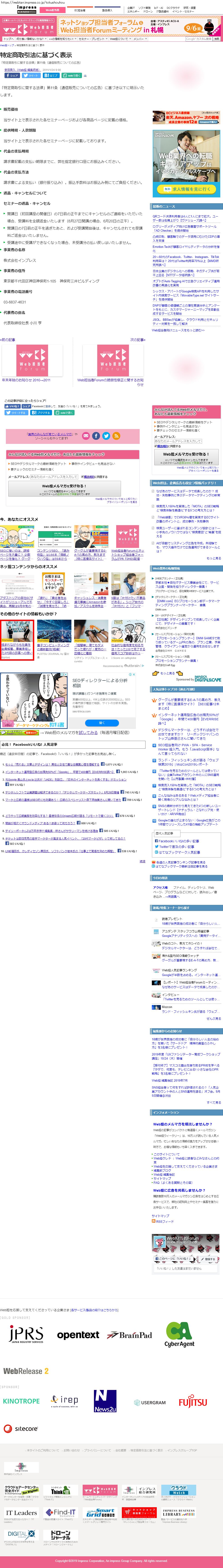 Webメディア 広告枠に赤枠付き