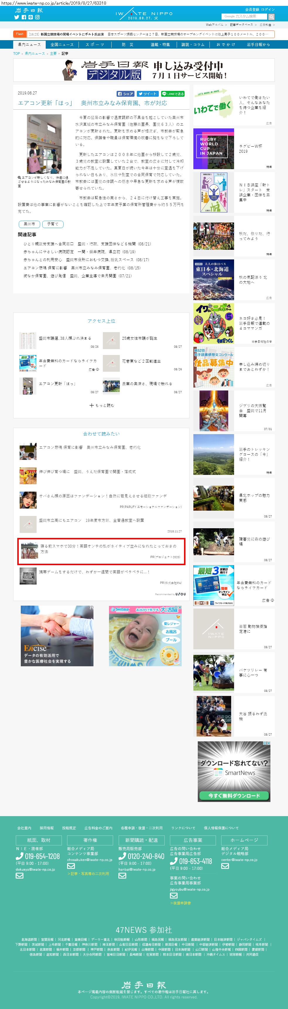 Webメディア 広告枠に赤枠付き
