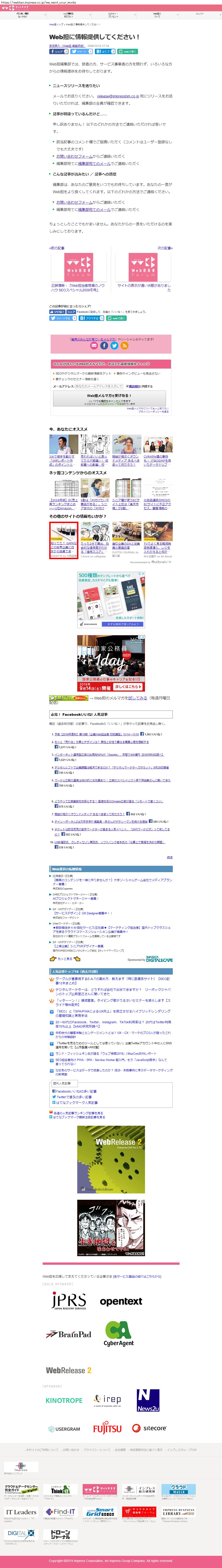 Webメディア 広告枠に赤枠付き