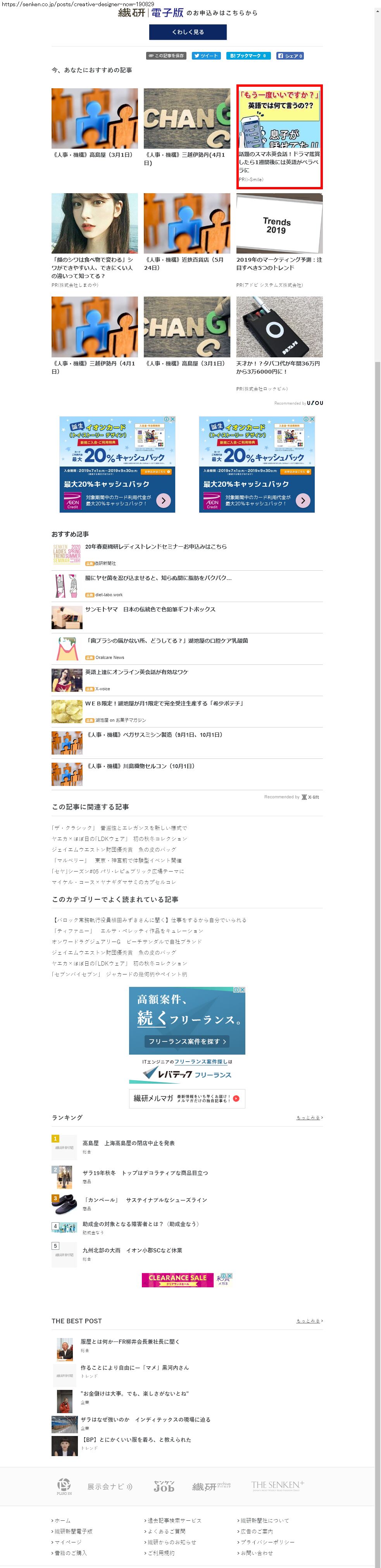 Webメディア 広告枠に赤枠付き