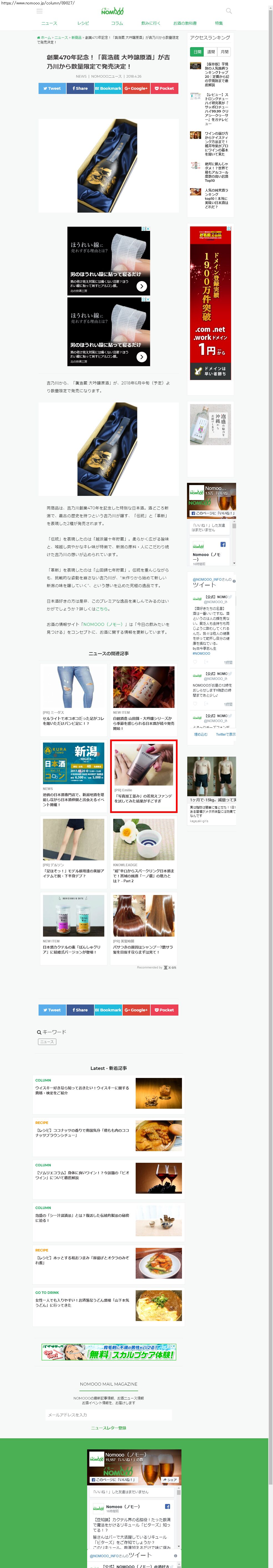 Webメディア 広告枠に赤枠付き