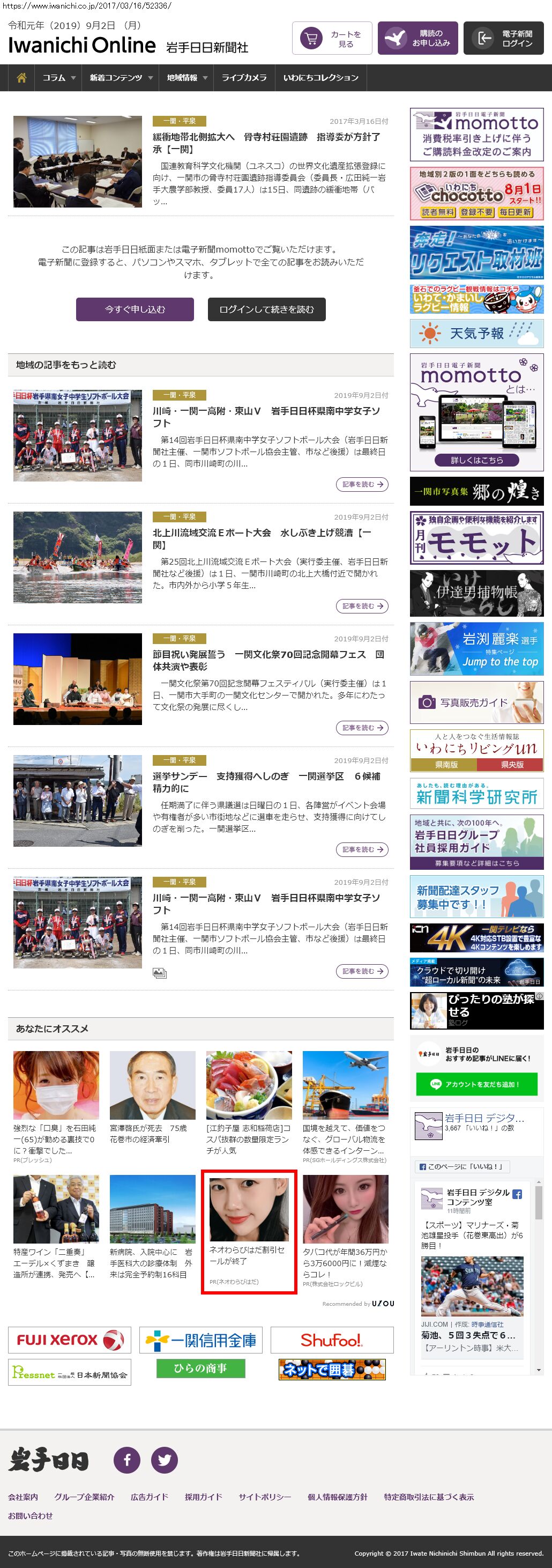 Webメディア 広告枠に赤枠付き