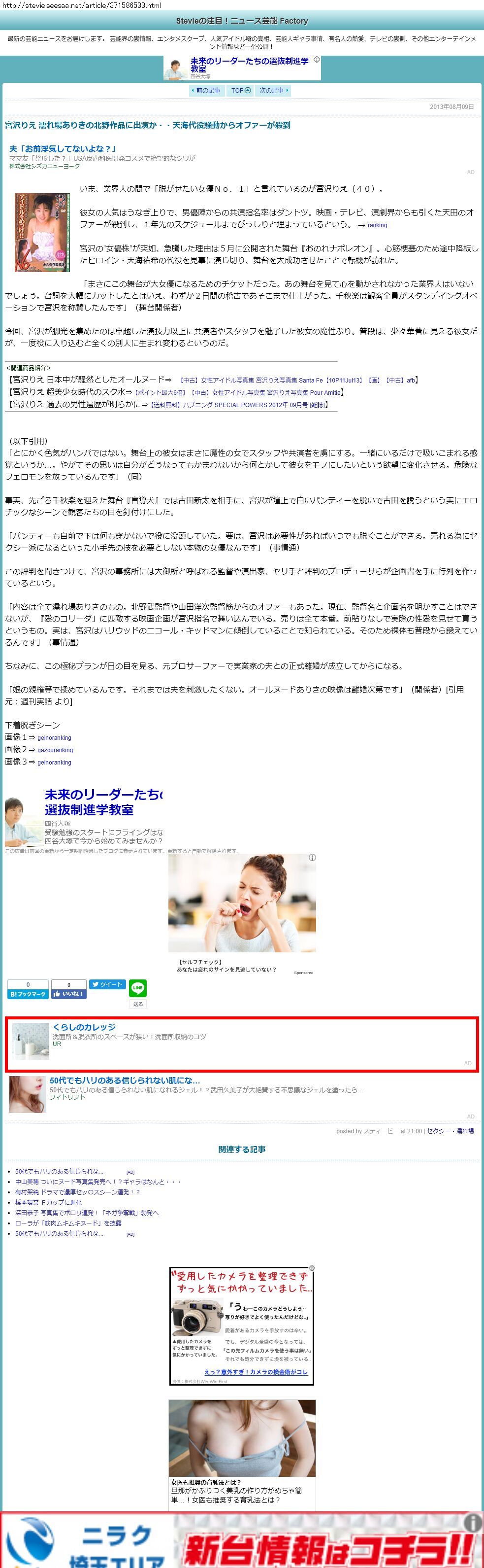 Webメディア 広告枠に赤枠付き