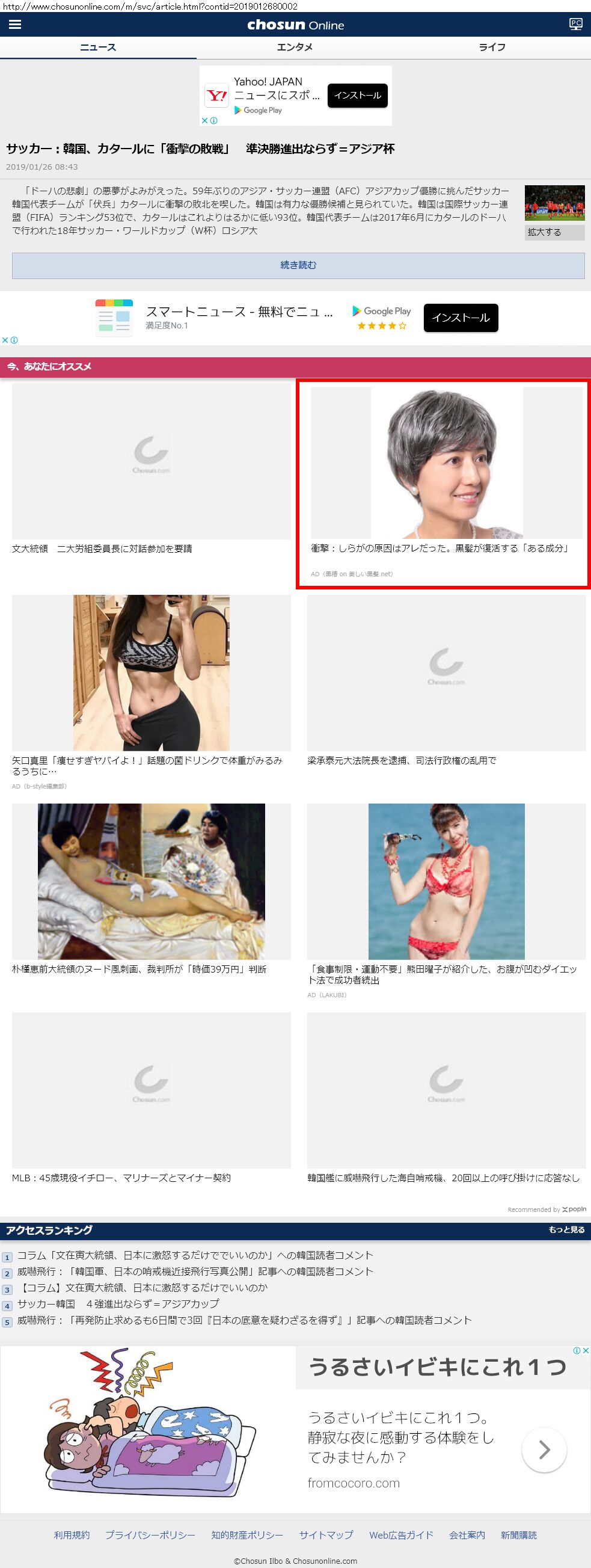 Webメディア 広告枠に赤枠付き
