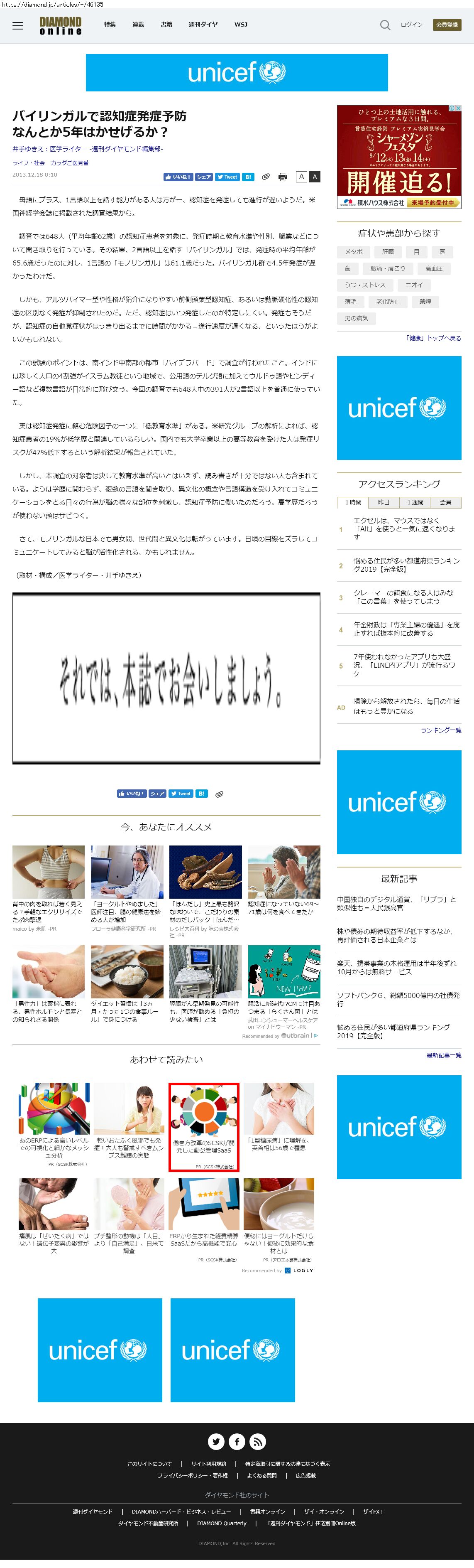 Webメディア 広告枠に赤枠付き