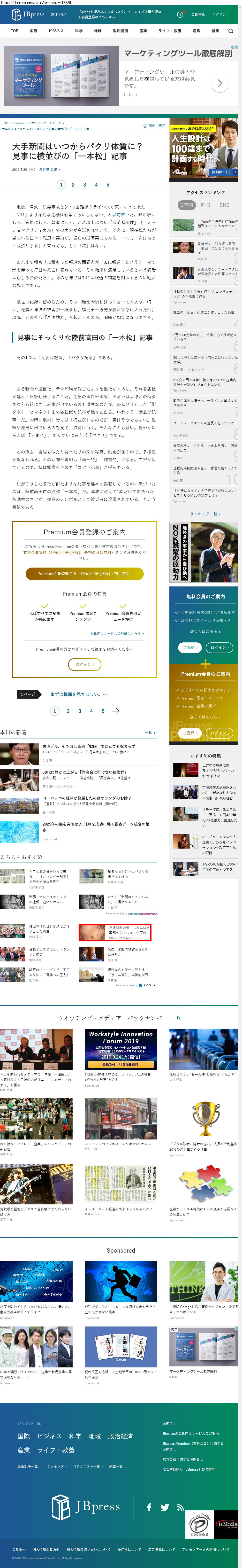 Webメディア 広告枠に赤枠付き
