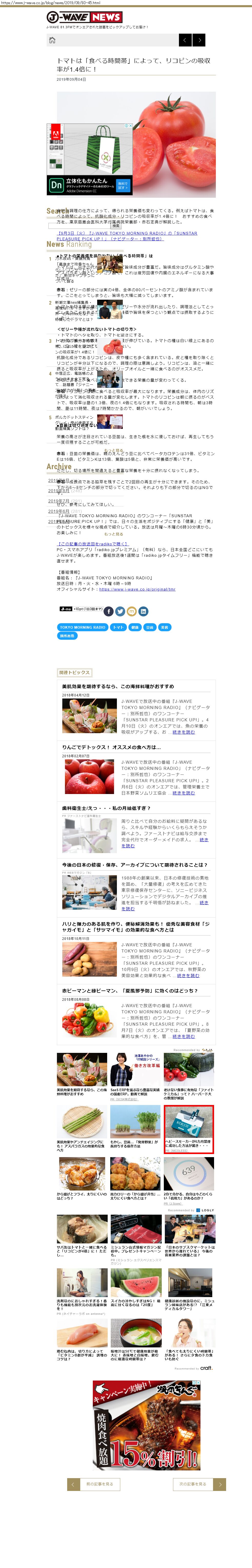 Webメディア 広告枠に赤枠付き