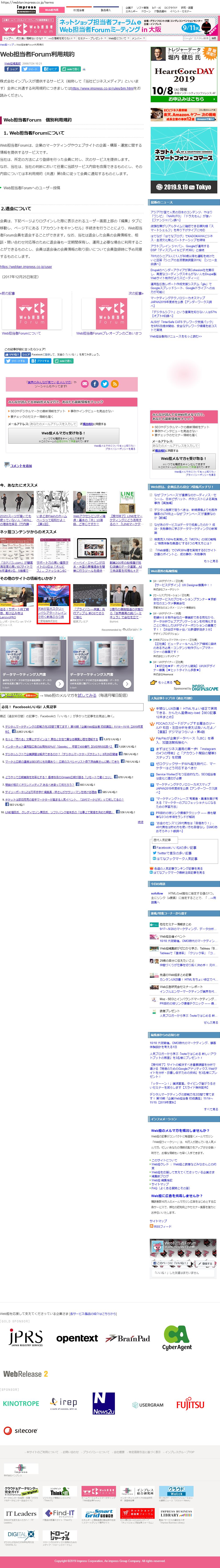 Webメディア 広告枠に赤枠付き