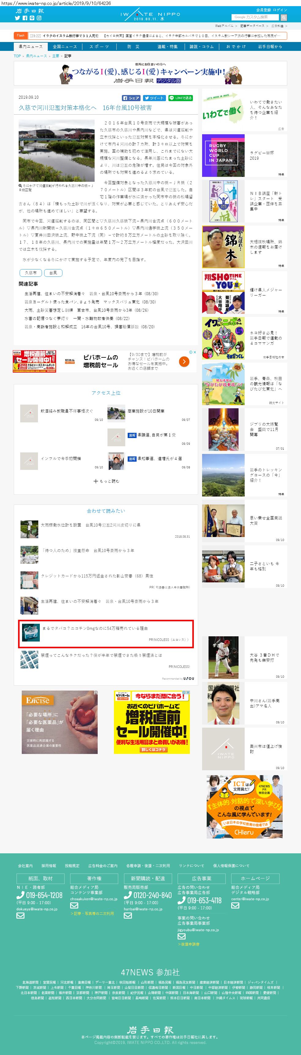 Webメディア 広告枠に赤枠付き