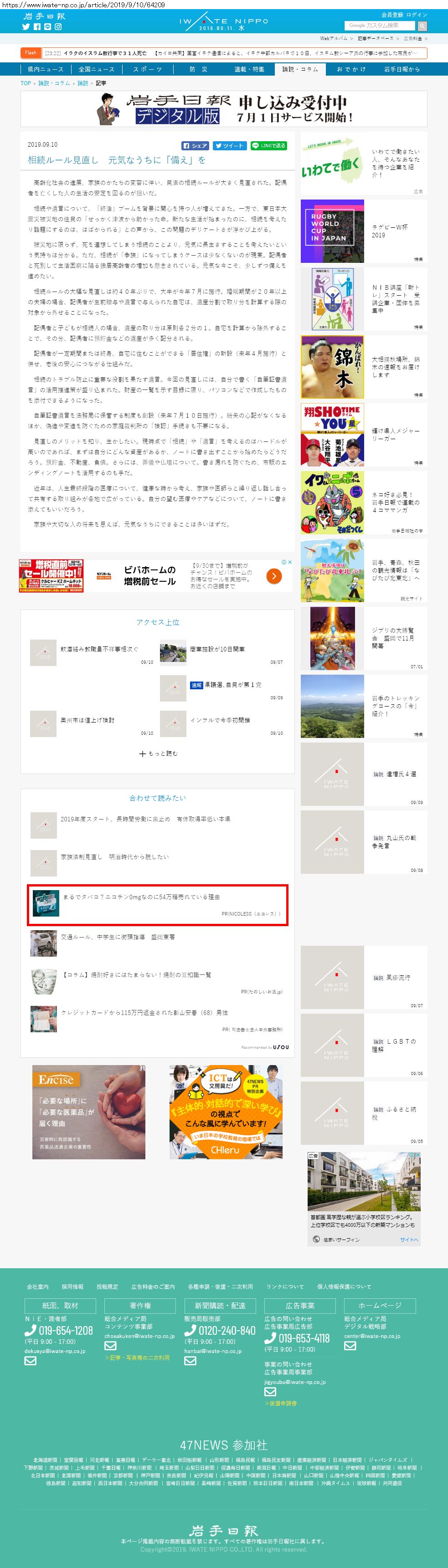Webメディア 広告枠に赤枠付き