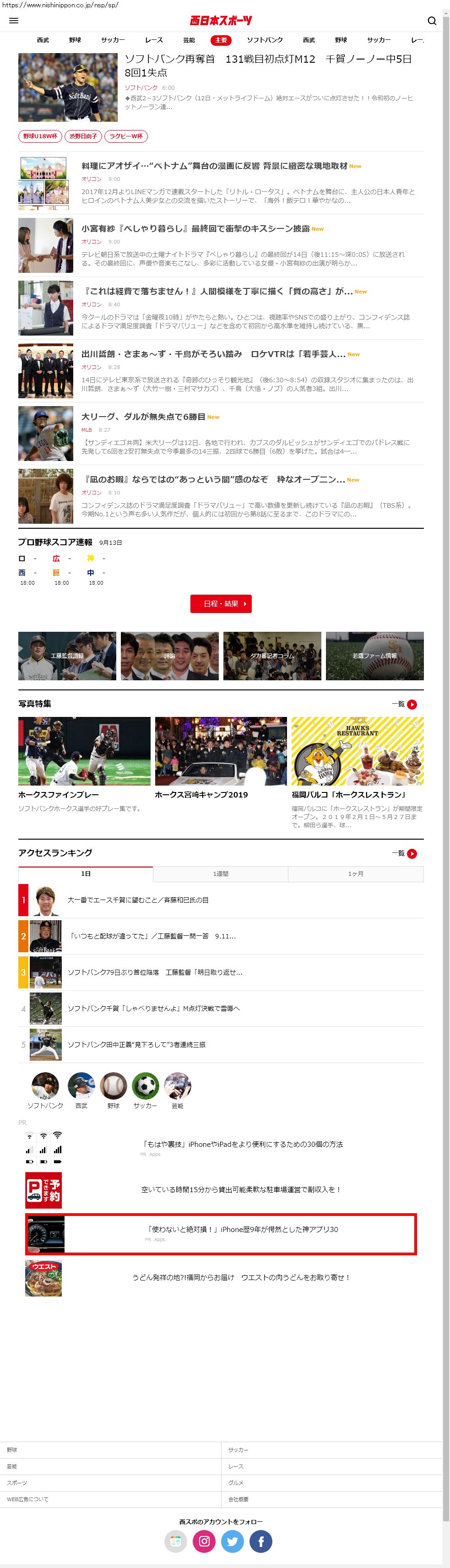 Webメディア 広告枠に赤枠付き